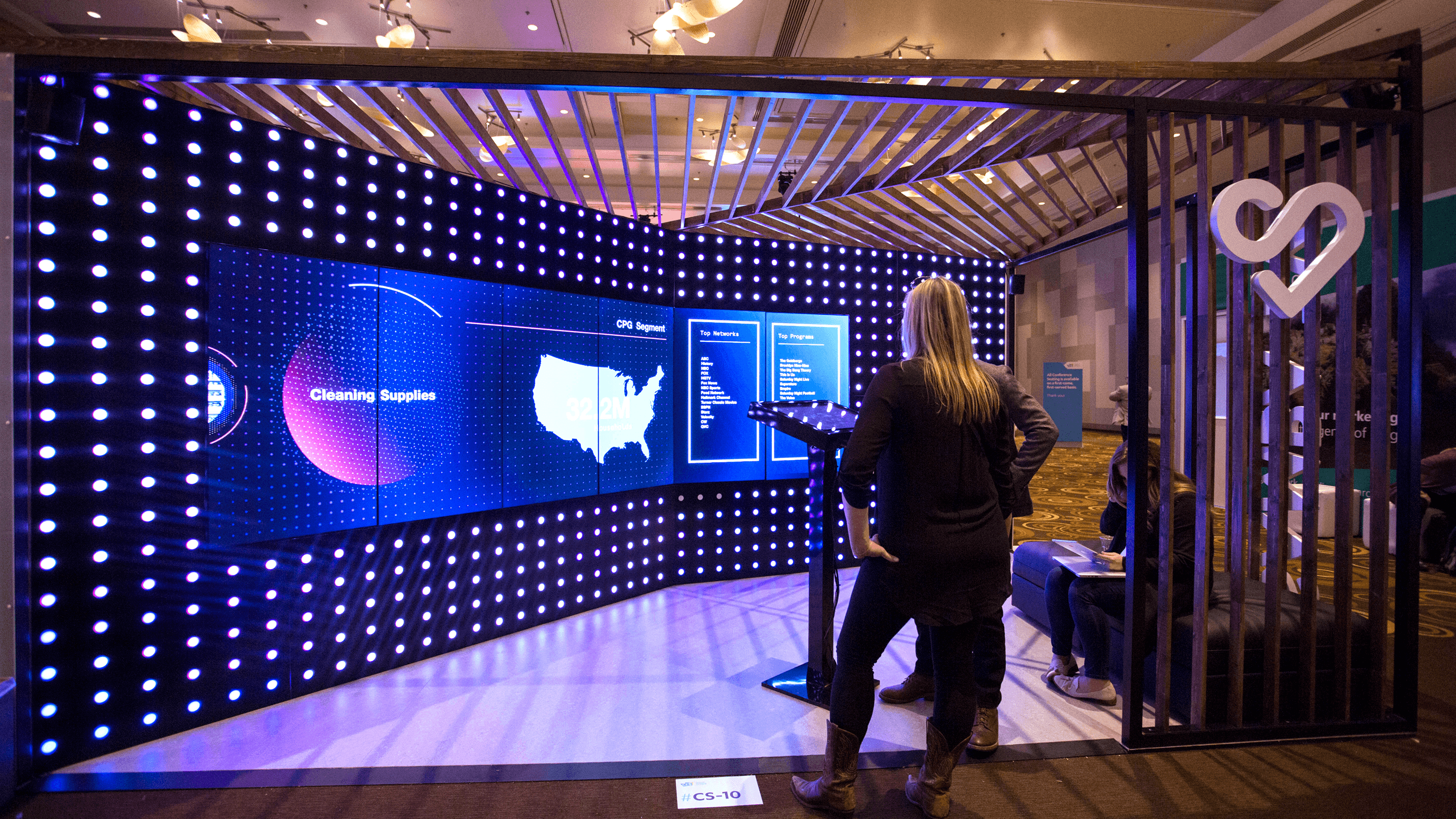 This sculptural display visualized Samba’s real-time data using abstract, ambient light animations. The installation included embedded displays and touchscreen interfaces built with TouchDesigner, allowing attendees to engage directly with the product—navigating attention data, media signals, and live case studies.